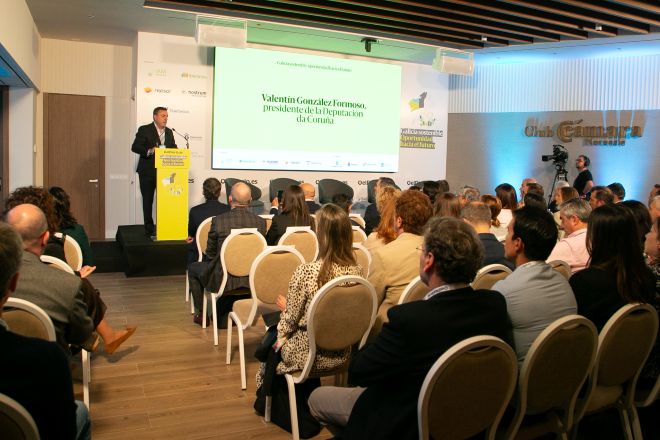 O presidente da Deputación da Coruña, Valentín González Formoso, participou na cidade da Coruña no foro “Galicia Sostenible: Oportunidad hacia el futuro”, organizado por eldiario.es, cunha intervención na que destacou o papel estratéxico que Galicia pode e debe asumir no proceso de transición ecolóxica que está a impulsar Europa.