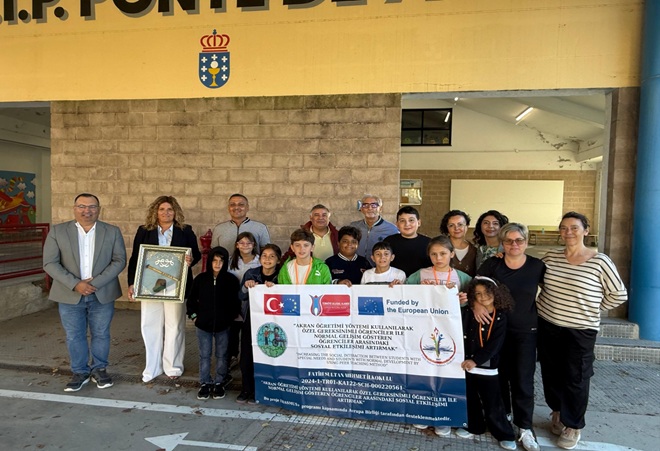 A alcaldesa de Narón, Marián Ferreiro, e o edil de Seguridade Cidadá, José Oerona, desprazáronse ao colexio Ponte de Xuvia para despedir a un grupo de docentes e escolares turcos que estiveron esta semana na cidade.
