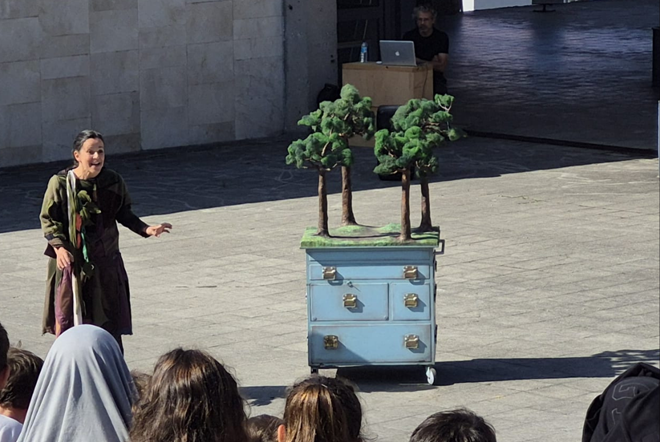 Nesta ocasión, a concellería de Cultura reservaba a representación para o alumnado do CPI Atios, que seguía con atención a obra «O urso que nâo era», da compañía portuguesa de Márcia Leite.