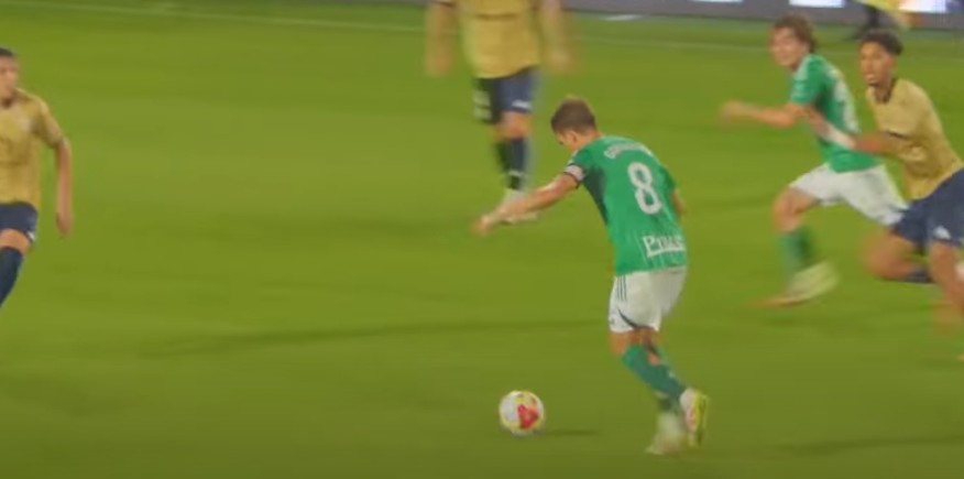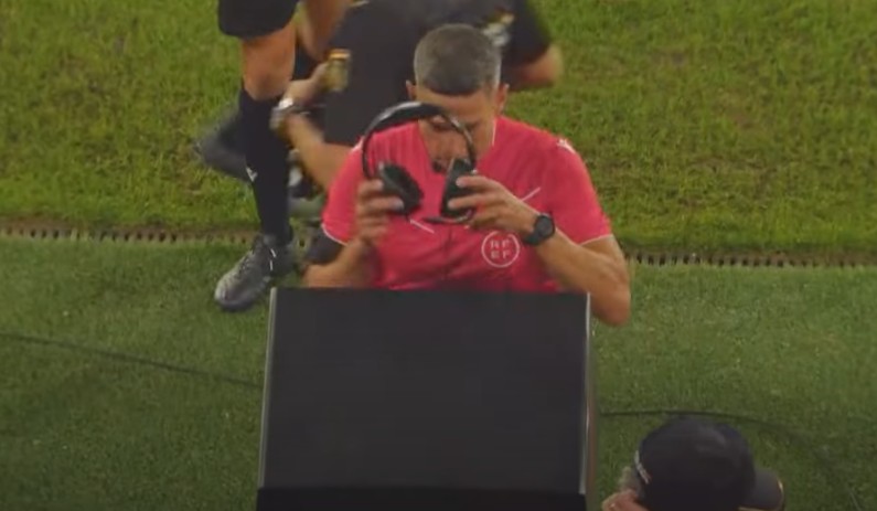 Antes del descanso, solicitó revisión de VAR, Pablo López, por una caída de Escobar en el área rival, pero el colegiado no vio nada punible en la pantalla. Con dominio verde se llegó al final del primer acto en A Malata.