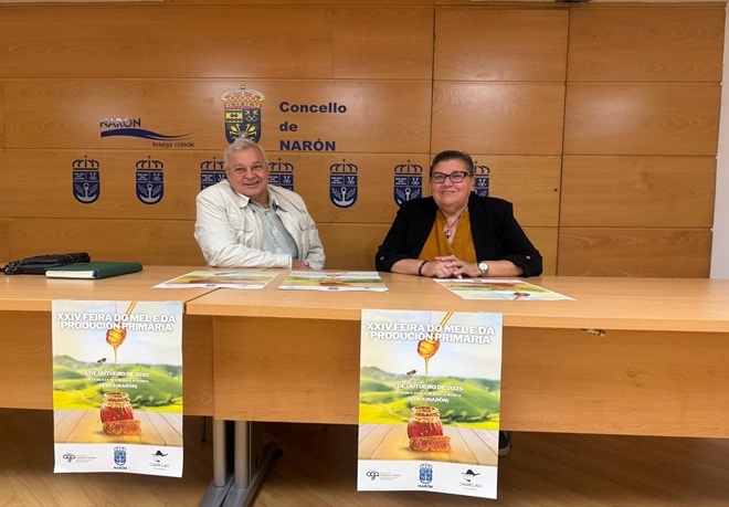 O recinto feiral do Trece, na parroquia de Sedes, acolle este domingo 5 de outubro unha nova edición, a trixésimo cuarta, da Feira do mel e produción primaria. A edil de Feiras, Mar Gómez, e o delegado da Asociación Galega de Apicultura en Ferrolterra, Rafael Díaz, presentaron a convocatoria.