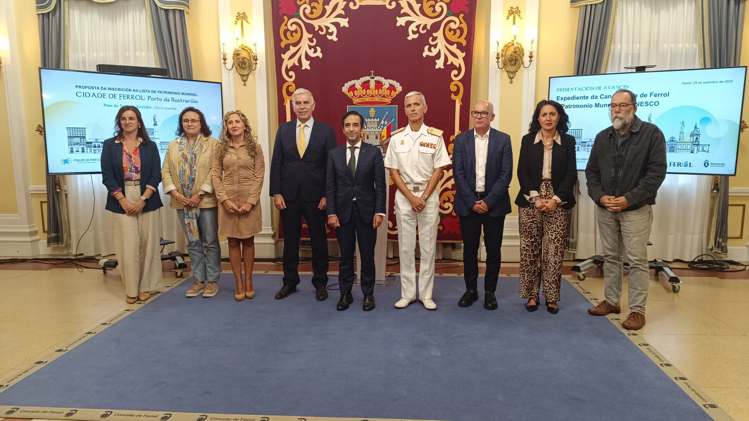 En esta sesión participaron el almirante del Arsenal de Ferrol, Vicente Rubio; la subdirectora xeral de Conservación e Restauración de Bens Culturais de la Xunta de Galicia, Susana Fandiño Gantes-García; el vicepresidente de la Deputación de A Coruña, Xosé Regueira; la delegada de la Xunta, Martina Aneiros; la responsable de la empresa consultora, María Mesías y el coordinador de la candidatura y experto en patrimonio mundial, Alfredo Conti.