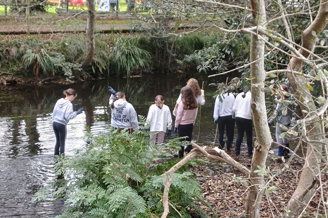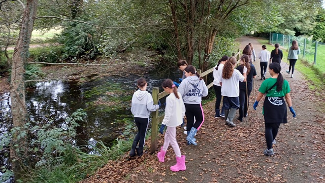 A actividade, prevista inicialmente para o domingo da semana pasada, retrasouse até o luns co obxectivo de facilitar a implicación do centro educativo. Na compaña do profesorado e persoal municipal, as mozas e mozos etiraron máis de 40 quilos de refugallos do tramo do Xubia comprendido entre o Mesón A Granxa e a ponte da AC-862.