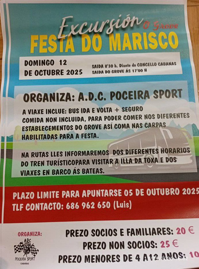 Y próximamente… el domingo 12 la asociación Poceira Sport organiza una excursión a la Festa do Marisco en O Grove