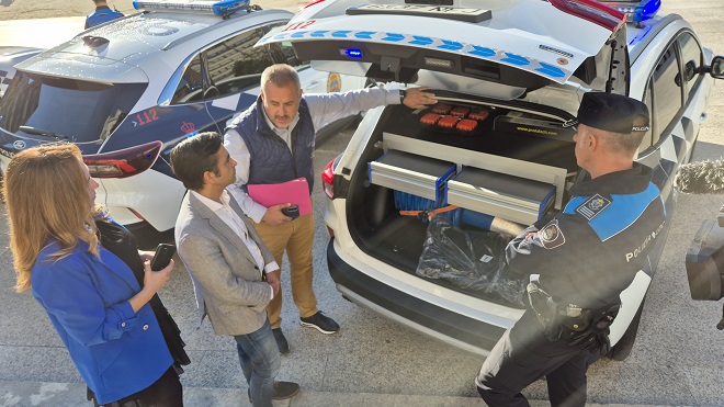 Además, presentan dos linternas multifunción ligeras, botiquín equipado con material básico, un extintor, cinta de jalonar, conos de señalización con la indicación de Policía y peligro, dos bastones luminosos de luces LEDs u otros aparatos ópticos para la regulación nocturna del tráfico, escudo de intervención y protección policial, entre otros.