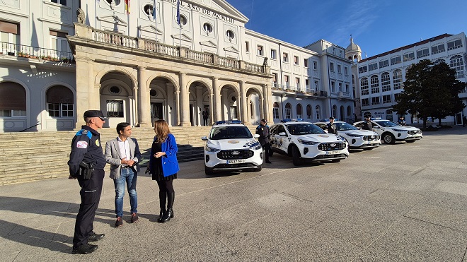 El alcalde de Ferrol, José Manuel Rey Varela, presentó esta mañana en la plaza de Armas los cuatro nuevos vehículos de la Policía Local que sustituirán a otros tantos automóviles del parque móvil, que cuenta con 18 coches y cuatro motos.