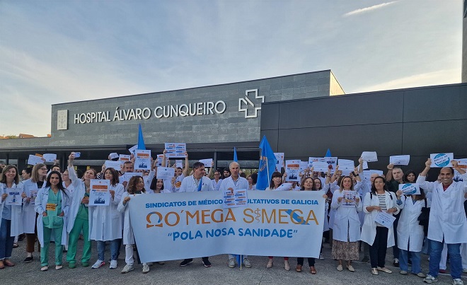 En la misma línea han hablado en Vigo el presidente de O’Mega, Manuel Rodríguez, así como Catalina Fernández, representante de MUD. En la ciudad olívica, cerca de un centenar de médicos se han concentrado en la puerta principal del hospital Álvaro Cunqueiro a partir de las 11.00 horas.