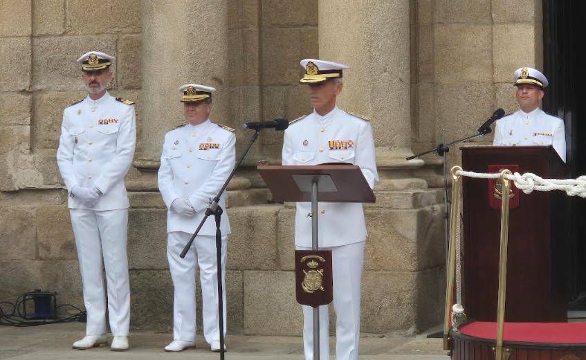Quienes conmemoráis hoy vuestro pase a la reserva culmináis la singladura que empezasteis jurando la bandera, esa misma de la que hoy os despedís y que representa lo mejor de España, nuestra tradición y nuestra forma de vida. Entre aquel primer saludo y este último adiós ha transcurrido toda una vida en activo cada uno, cada uno con vuestras propias particularidades, alegrias y sin sabores pero todos con el común orgullo de haber servido a España en la Armada.