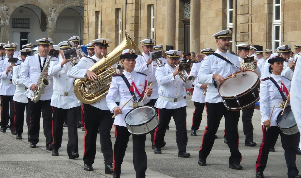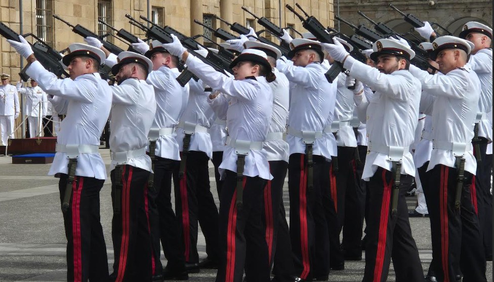 Los honores de Ordenanza han sido rendidos por una compañía, al mando del teniente de navío ingeniero Joaquín Poves, compuesta por escuadra de gastadores y banda de cornetas y tambores de la Escuela de Especialidades «Antonio de Escaño»; la Unidad de Música y una sección del Tercio Norte de Infantería de Marina; sección del Arsenal de Ferrol, y una tercera sección con alumnos de la Escuela de Especialidades Esengra, de La Graña.
