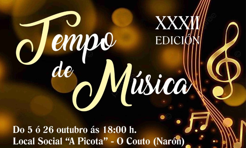 O Concello de Narón colabora coa Asociación de Veciños do Couto na trixésimo segunda edición do ciclo Tempo de Música, que se iniciará este domingo ás 18:00 horas no local social da Picota, no Couto.