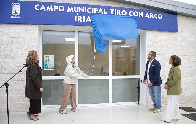 A rexedora local, recordou que hai catro meses que se celebrou nestas instalacións o primeiro campionato de tiro con arco a nivel autonómico, no que participaron máis de 200 arqueiros procedentes de diversos clubs. “Catro meses despois cadramos axendas para que estas instalacións leven oficialmente o nome de Iria Grandal, tal e como se acordou no pleno, en recoñecemento á exemplar traxectoria desta arqueira olímpica naronesa que hoxe nos acompaña”.