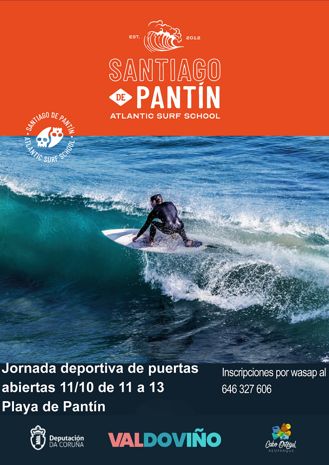 Santiago de Pantín Atlantic Surf School organiza una jornada deportiva de puertas abiertas dirigida a niños y niñas a partir de 12 años y personas adultas. En ella, las personas participantes podrán iniciarse en la práctica del surf.