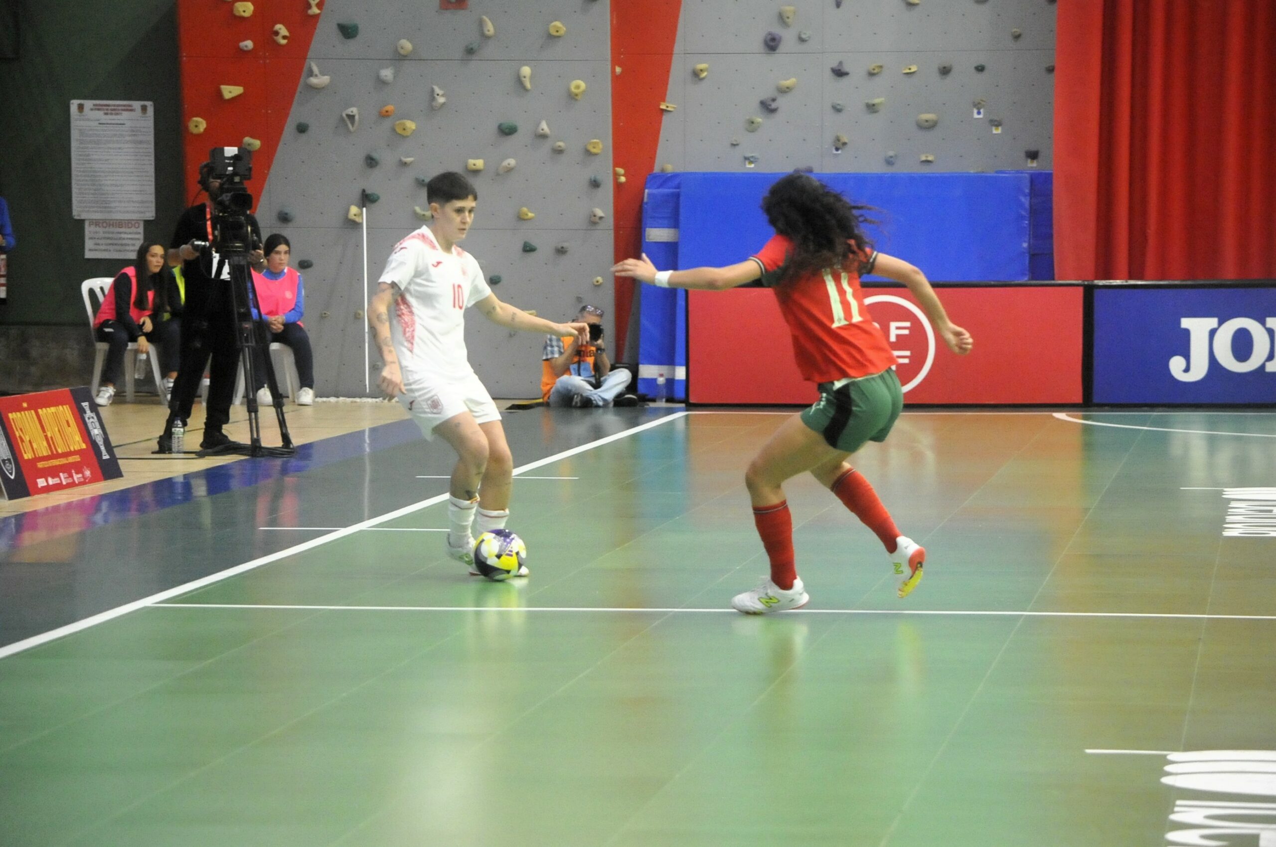 España buscaba el gol que les permitiera ampliar distancias, pero Portugal estaba yendo a más sobre la pista, volviendo a empatar el partido con un gol de volea de Inés Matos al primer toque en el borde del área y, poco después, Janice tuvo en sus botas el tercero en un potente tiro en la frontal del área que despejaba Cristina a media altura, pero no podía evitar finalmente el 2-3 con un gol de Kika desde diez metros por raso en una rápida jugada de equipo tras un córner.