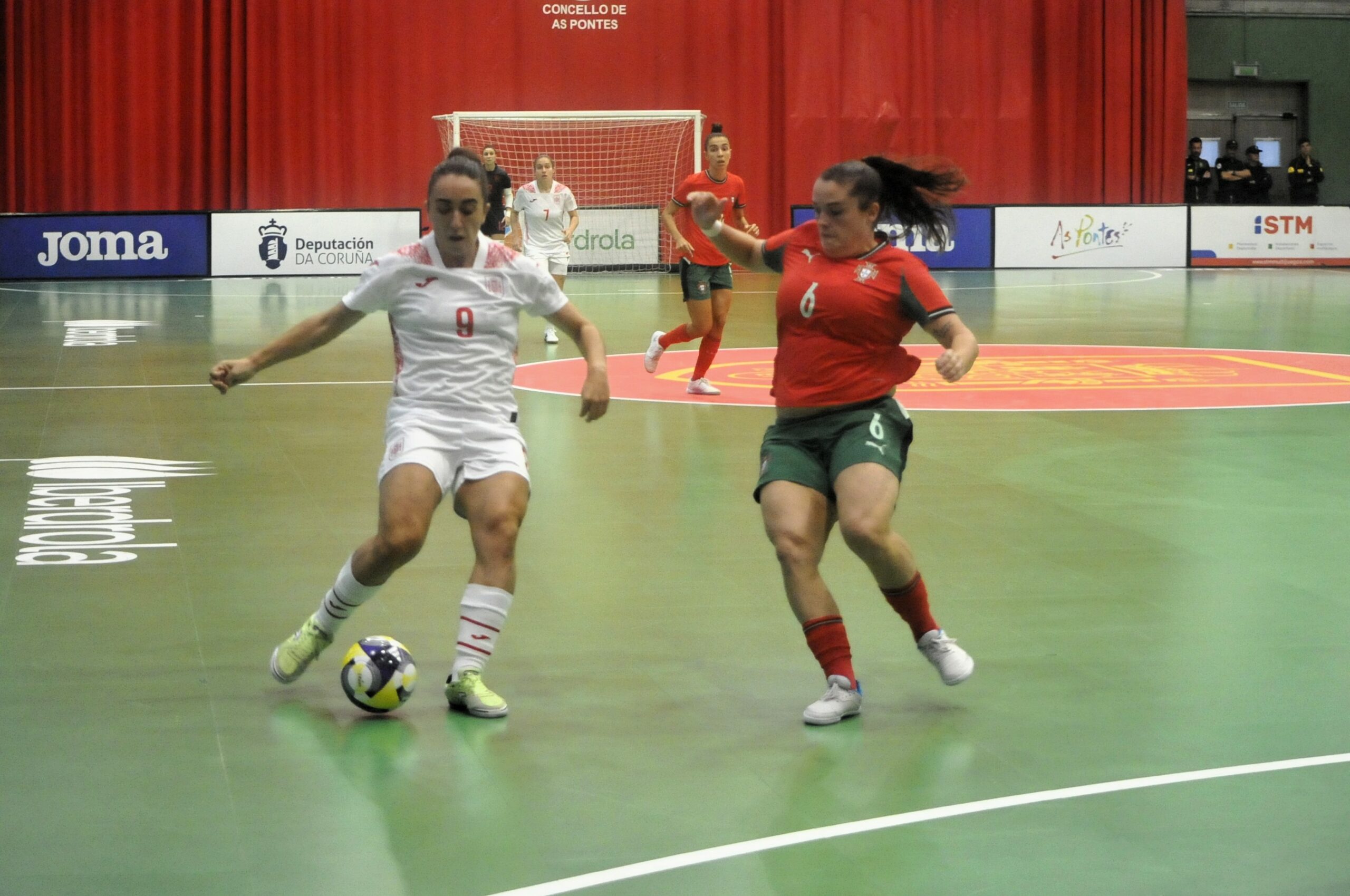 España iba a más, alentadas por el público que abarrotaba el pabellón de As Pontes, buscando el gol que las pusiera por delante, teniendo Laura Córdoba otra buena oportunidad con un tiro desde diez metros por alto que volvía a despejar Ana Catarina con otra gran mano.