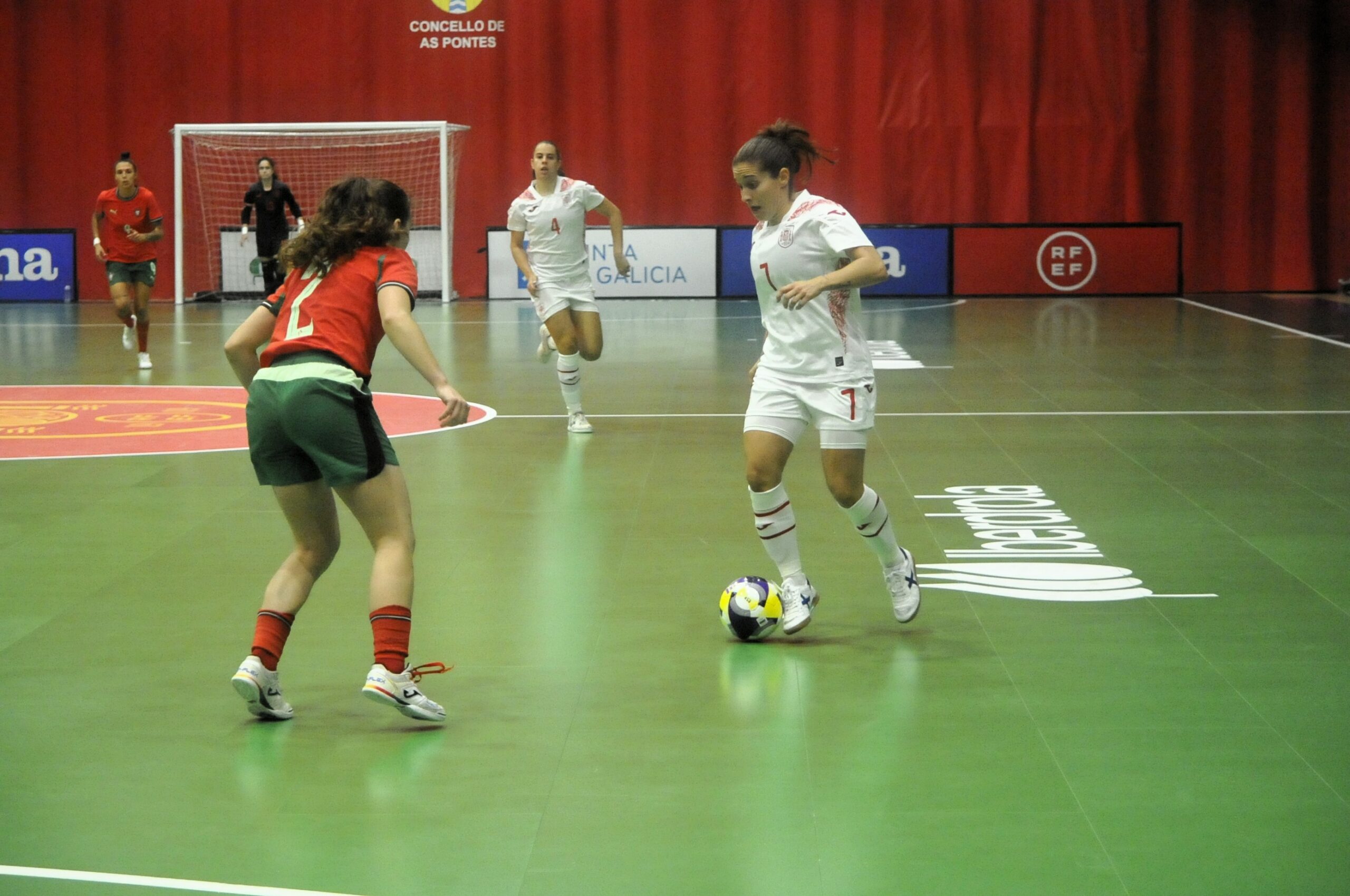 As Pontes se vestía de gala para recibir a la selección española absoluta de fútbol sala femenino, recibiendo en partido internacional amistoso a Portugal, empatando 3-3, en un duelo disputado en la tarde-noche del miércoles.