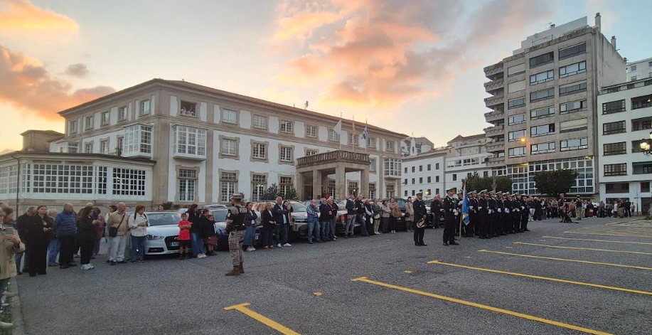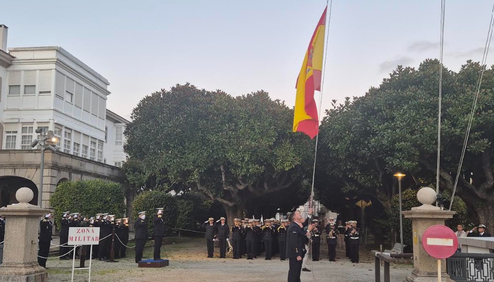 Este jueves, día 9 de octubre, a las ocho de la tarde, al ocaso, tuvo lugar el solemne acto de arriado de Bandera frente al edificio de Palacio de Capitanía de Ferrol dentro de la programación de la Armada con motivo del Día de la Fiesta Nacional.