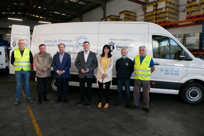 O presidente da Deputación da Coruña, Valentín González Formoso, e a deputada de Política Social, Mar García, fixeron entrega dunha nova furgoneta ao Banco de Alimentos Rías Altas (Balrial) nas instalacións da entidade. A furgoneta é unha VW Crafter de batalla longa con capacidade de carga de ata seis europalets.