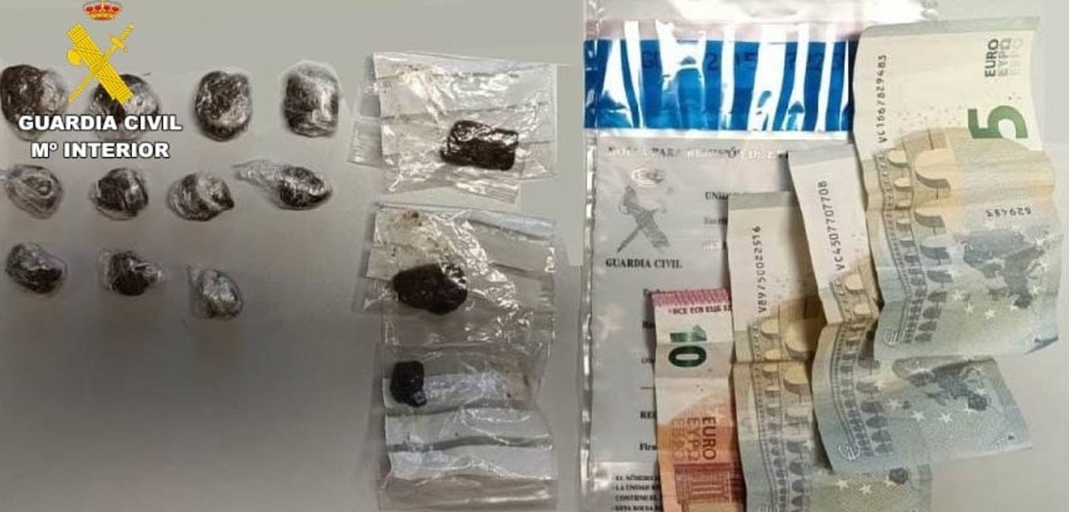 La Guardia Civil detuvo al joven como presunto autor de un delito contra la salud pública y procedió a la incautación de los efectos encontrados.