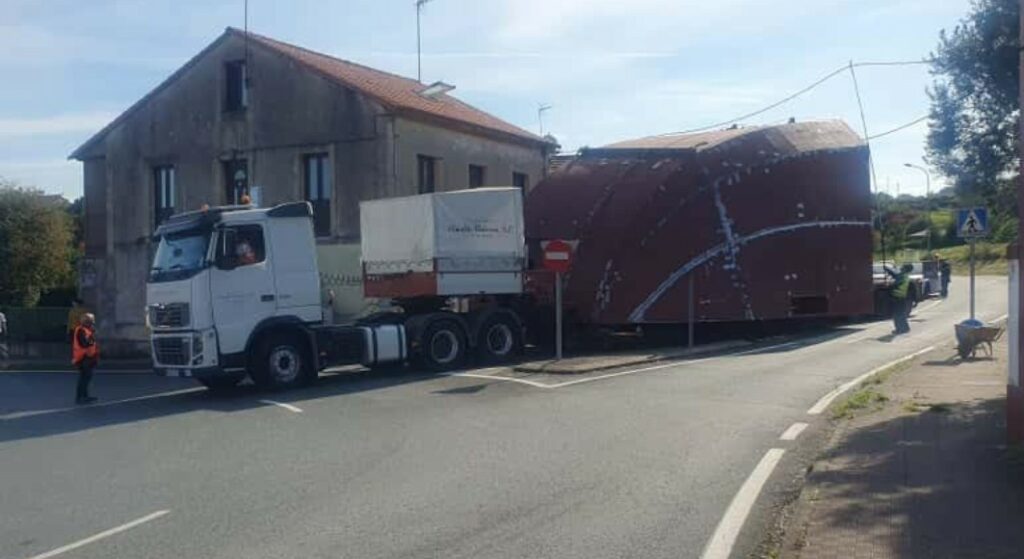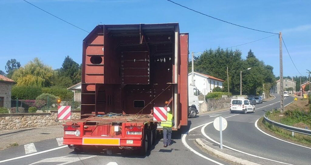 Toda una proeza la realizada durante la jornada de este miércoles con motivo del traslado desde el polígono de Vilar do Colo hasta el muelle de Mugardos de dos grandes piezas de barcos que posteriormente serían llevadas por mar en gabarras hasta el astillero de La Graña.