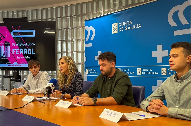 La delegada territorial de Ferrol, Martina Aneiros, presentó este jueves el evento acompañada del concejal de Fiestas de Ferrol, Arán López, y de los directores de la gala, Dani Polo y Pedro Bugarín, dando cuenta del crecimiento que ha experimentado el festival y el éxito de público alcanzado -este año esperan llegar a los 100.000 espectadores acumulados a lo largo de las cuatro ediciones-.