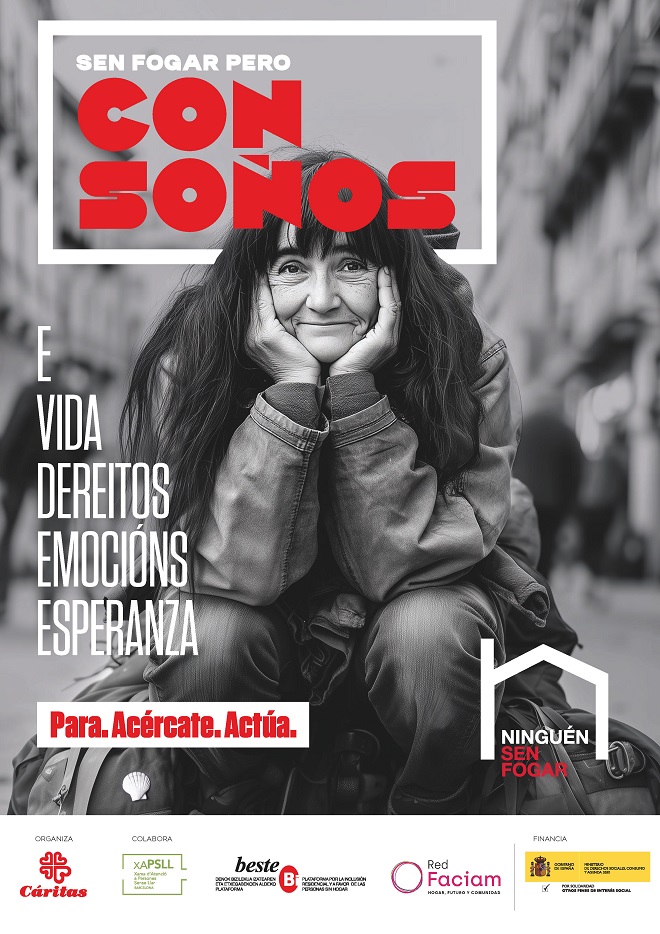 Además, se inaugurará la exposición fotográfica con imágenes de la fotógrafa Lua Ribeira, quien colabora como voluntaria en el programa de personas sin hogar de Cáritas, y se proyectará un vídeo con testimonios de personas participantes del centro de día de inclusión social Gabriel Vázquez Seijas, mostrando sus sueños, esperanzas y experiencias de vida. La exposición estará disponible del 23 al 30 de octubre en el Centro Torrente Ballester de Ferrol.