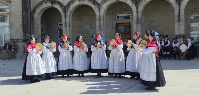 O grupo de pandereteiras que actuará na Casa da Cultura este sábado -19:00 horas- intégrano nove mulleres que manteñen viva a tradición do canto e a percusión galega, empregando principalmente pandeiretas e outros instrumentos de man. Da xuntanza de voces e instrumentos xorden sons e ritmos que forman parte esencial da identidade popular do país, gardada e transmitida durante xeracións polas mulleres ás que as Letras Galegas deste ano tamén lles renderon tributo.