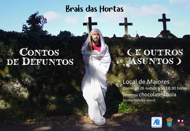 Como vén sendo tradición, con motivo do Samaín se celebra unha sesión especial de contos de arrepío. Nesta ocasión achegarase Brais das Hortas, da compañía Charlatana, para ofrecer o seu espectáculo: “Contos de defuntos (e outros asuntos)”. Terá lugar o domingo, 26 de outubro ás 18:30 horas no local Social de Maiores (rúa Castelao / Telefónica).