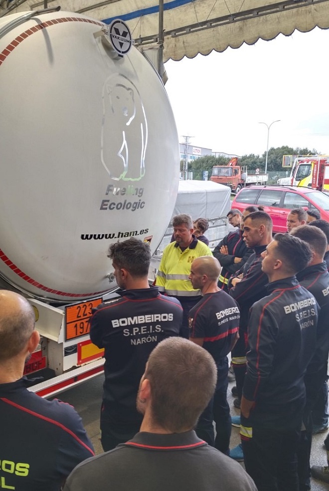 Ademais, os bombeiros puideron intercambiar impresións e debater cos técnicos de HAM sobre posibles situacións de emerxencia relacionadas con este tipo de mercadoría, co fin de estar preparados e traballar sempre coas máximas garantías de seguridade. Cabe destacar que as cisternas de GNL son actualmente as máis grandes dedicadas ao transporte de mercadorías perigosas (MMPP) por estrada, cunha lonxitude aproximada de 14 metros e unha capacidade de ata 22.000 kg de GNL.