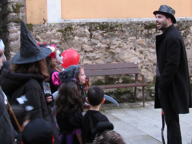 Un total de 255 persoas se inscribiron para participar no centro histórico nesta proposta, impulsada polo Concello para conmemorar o samaín, mentres no patio do CEIP San Isidro a veciñanza desfrutaba do tradicional magosto, degustando as típicas castañas asadas e os boliños preñados.