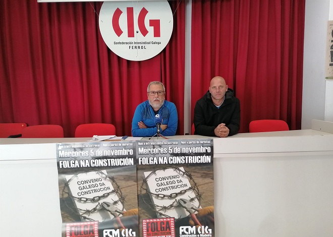La Federación de Construcción e Madeira de CIG-Ferrol ha anunciado este lunes la convocatoria de huelga general en el sector de la construcción en Galicia para el próximo 5 de noviembre. La movilización afectará a los convenios de construcción, pintura y derivados del cemento.