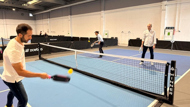 El alcalde de Ferrol, José Manuel Rey Varela junto al concejal de deportes Ricardo Aldrey han visitado las instalaciones existentes en la avenida Nicasio Pérez dedicadas a la práctica de pickleball, una nueva modalidad deportiva de raqueta que está teniendo una gran aceptación entre la ciudadanía.