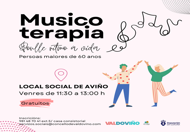 El Ayuntamiento de Valdoviño pone en marcha nuevos talleres de musicoterapia para mayores de 60 años en el local social de Aviño. El alcalde, Alberto González, explicó que el Departamento de Servicios Sociales responde a la solicitud de la asociación de vecinos de San Miguel y añade esta nueva sede.
