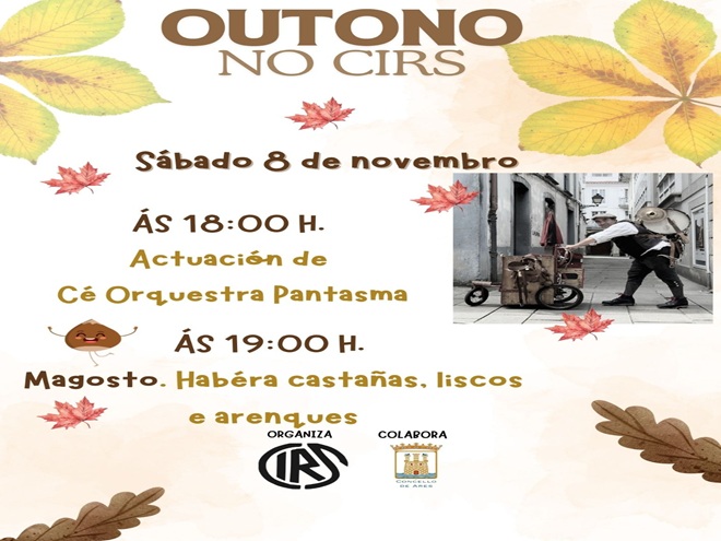 A xornada do magosto deste ano comezará ás 18 horas cunha actuación de Cé Orquestra cun espectáculo promovido polo Concello de Ares dentro da Rede Cultural da Deputación de A Coruña. Un espectáculo do que nenos e vellos levan gozado a mans cheas das súas propostas polas máis destacadas feiras, festas, festivais e romarías populares do país. Coa música como elemento común, Cé orquestra pantasma, non defraudará en Cervás.
