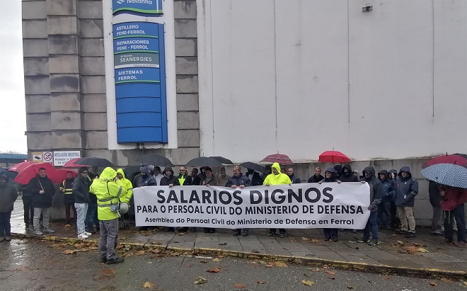 Personal civil del Ministerio de Defensa en Ferrol ha realizado en la mañana de este jueves un acto de protesta en la puerta principal de Navantia, escenificando el apoyo del comité de empresa del astillero y de la industria auxiliar. La movilización busca denunciar una «verdadera discriminación salarial» que, según los sindicatos, se ha «agravado» tras las últimas decisiones ministeriales.