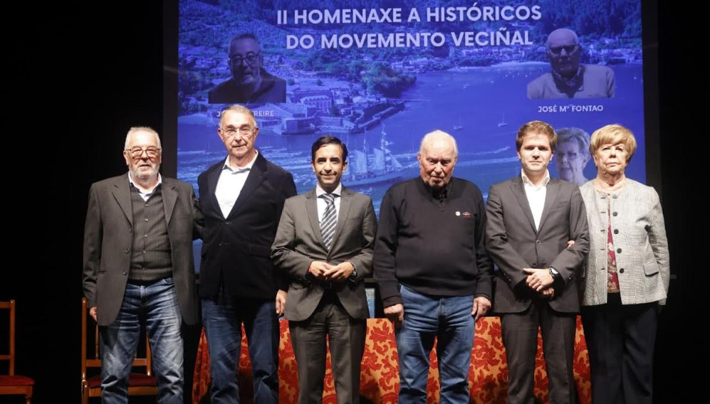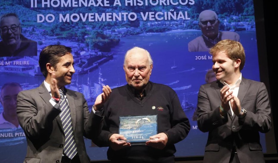 El alcalde de Ferrol, José Manuel Rey Varela, presidió el acto de homenaje del Ayuntamiento de Ferrol a representantes vecinales celebrado en la tarde de este viernes en el auditorio del centro cultural Torrente Ballester, en el que fue reconocido la labor de Manuel Pita Leira (AVV Valón), José María Freire Piñeiro (AVV Viladóniga-Vilasanche), María Azucena Muíños Cela (AVV A Graña) y José María Fontao Pita (AVV Santa Mariña).