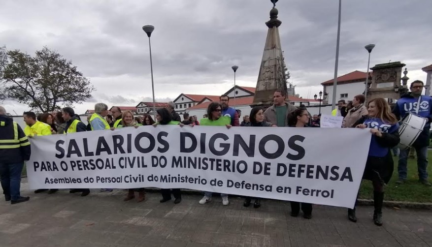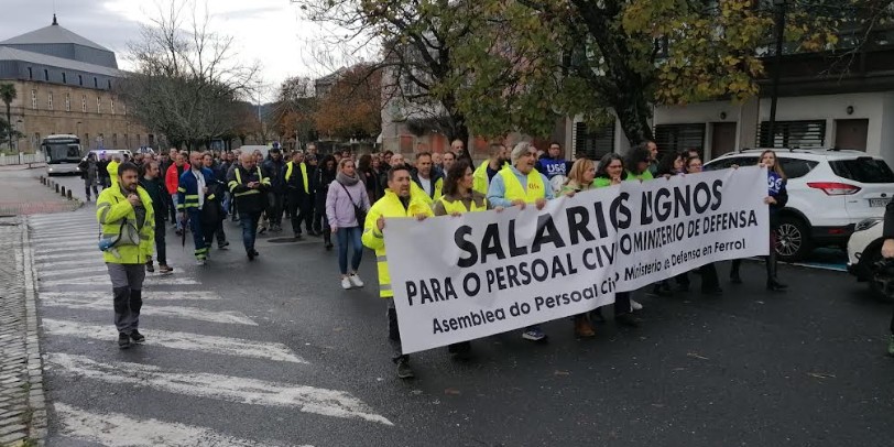 El personal civil del Ministerio de Defensa se manifestó en la mañana de este jueves en Ferrol para reclamar la equiparación salarial con el personal militar y la consolidación de un complemento de 300 euros mensuales en sus nóminas. La protesta, que se enmarca dentro de una ola de movilizaciones a nivel estatal, partió de la puerta del Parque del Arsenal y se dirigió al edificio de Hacienda en Esteiro.
