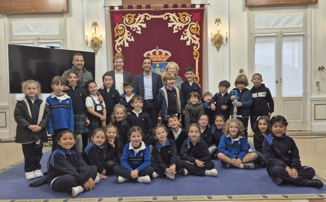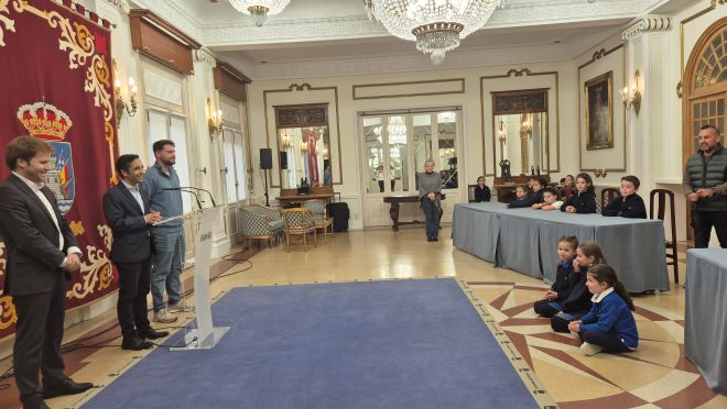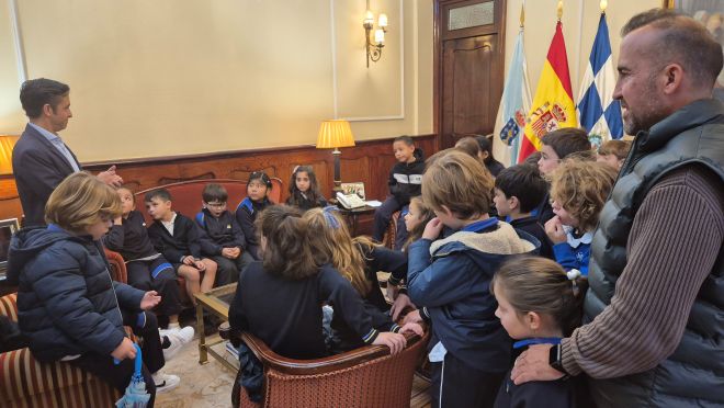 El alcalde de Ferrol, José Manuel Rey Varela, acompañado del teniente alcalde, Javier Díaz Mosquera, y el concejal de Juventud, Arán López, han recibido en la mañana del viernes 14 a un grupo de alumnos de segundo de Primaria del Colegio Arenales Compañía.