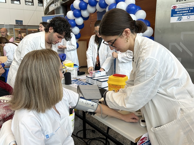 La Asociación de Diabéticos de Ferrolterra y la Facultad de Enfermería y Podología del Campus de Ferrol de la Universidade da Coruña, hicieron controles de la glucemia de la tensión arterial y podológicos, en el corredor principal del Hospital Arquitecto Marcide de Ferrol.