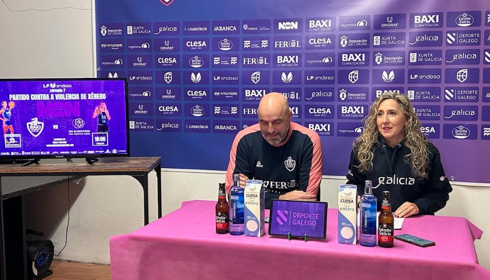 La delegada territorial de la Xunta en Ferrol, Martina Aneiros, y el entrenador del Baxi Ferrol, Lino López, presentaron en la mañana de este viernes el partido que lo enfrentará el próximo domingo, día 23, al IDK Euskotren y que está incluido dentro de la Campaña de Promoción y Sensibilización del Deporte Femenino Gallego 2025 que tiene en marcha la Xunta, en colaboración con los clubes femeninos de alta competición para luchar contra la violencia de género.