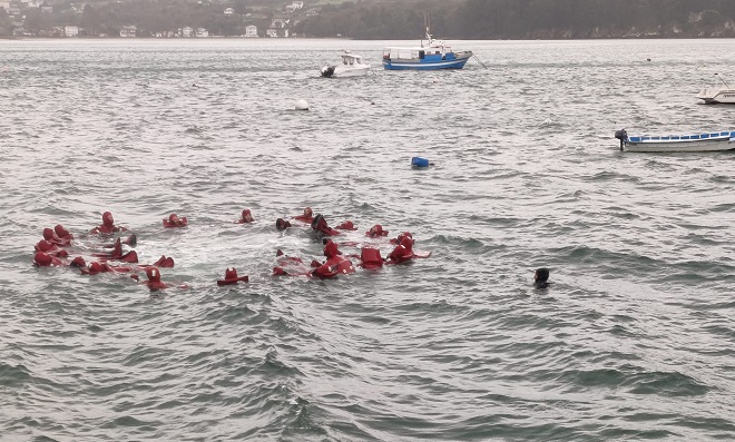 • Curso de Actualización de Formación Básica en Seguridade Marítima – de 16 horas, integramente prácticas, no que tamén se completaron o total de prazas ofertadas (20 persoas). Os alumnos renovaron as súas competencias en supervivencia no mar, prevención e loita contra incendios, segundo a normativa STCW.