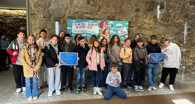 Un grupo de ocho niños y niñas, integrantes del Consejo Local de Infancia y Adolescencia (CLIA) Ondiñas na Vila de Cedeira, participó el pasado viernes en el XIII Foro de Participación Unicef que se celebró en el Parlamento de Galicia, en el marco de la celebración del Día de la Infancia.