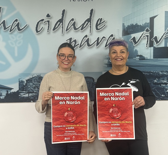O Concello de Narón presentou este luns a campaña Merca Nadal, unha iniciativa municipal que se desenvolverá do 1 ao 22 de decembro co obxectivo de dinamizar o comercio local. Acompañada por Choly Díaz, presidenta da Asociación de Comerciantes de Narón, a concelleira de Promoción Económica, Olga Ameneiro, apuntou que “O Nadal é unha oportunidade para apoiar o tecido local e para lembrar que detrás de cada compra hai persoas que manteñen abertas as portas dos nosos comercios durante todo o ano”.