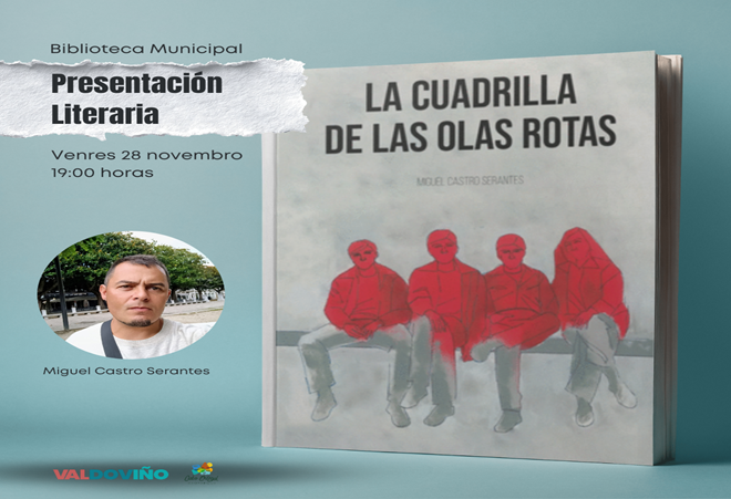 El escritor Miguel Castro Serantes presentará este viernes en Valdoviño su tercer trabajo literario, «La cuadrilla de las olas rotas». El acto se celebrará en la Biblioteca Municipal, en la Casa de la Cultura, a partir de las 19 horas, con entrada libre. Será sin duda una cita muy especial, ya que Valdoviño está muy presente en las páginas de la novela, tanto sus paisajes y espacios como sus gentes.