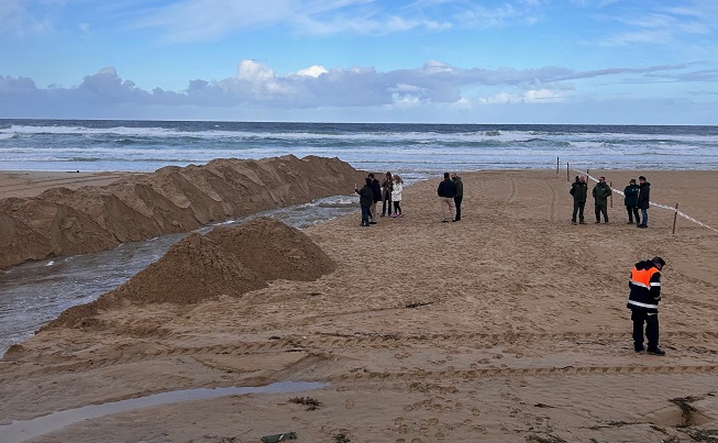 A delegada territorial da Xunta en Ferrol, Martina Aneiros, supervisou este martes os traballos de apertura da canle artificial de desaugamento da lagoa da Frouxeira. Esta medida adóptase unha vez que a lámina de auga acadou a cota recollida no Plan de conservación da lagoa e areal de Valdoviño, o que xustifica a correspondente intervención da Consellería de Medio Ambiente e Cambio Climático.