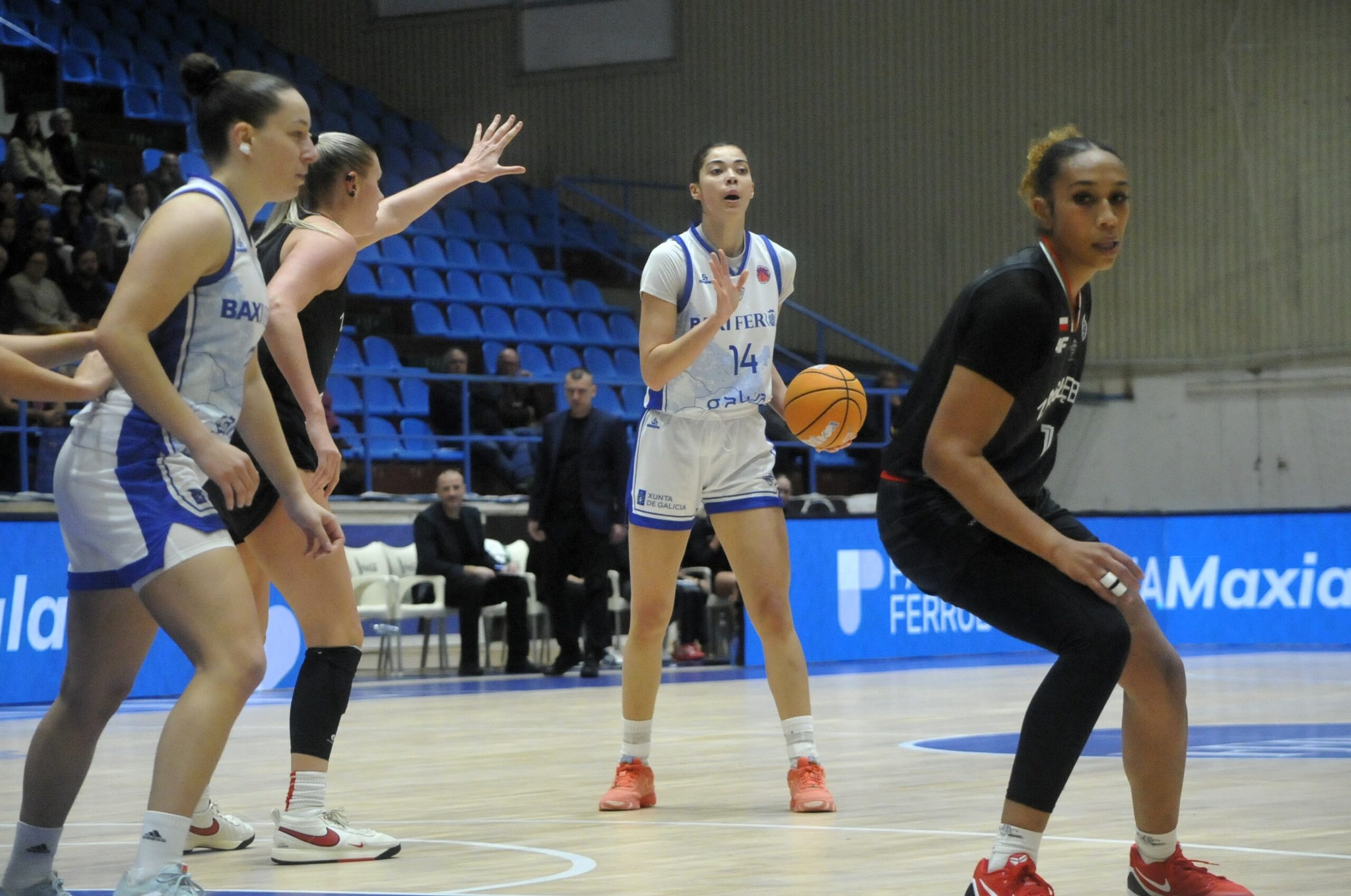 El color blanco de la camiseta del Baxi Ferrol fue casi el único que se vio sobre la pista en el sexto y último partido de la fase de grupos de la Eurocup Women, consiguiendo la victoria por 92-49, en un partido disputado en la noche del miércoles, en el Pabellón de A Malata.