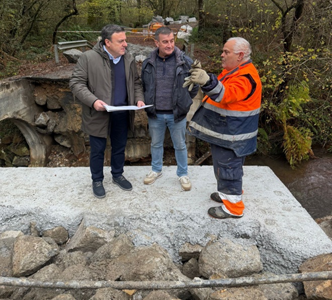 O Concello das Pontes avanza a bo ritmo nos traballos de reparación da infraestrutura de paso sobre o río Chamoselo, na Pedrafita, na parroquia do Aparral. As obras, que deron comezo recentemente, foron supervisadas onte polo alcalde, Valentín González Formoso, acompañado polo concelleiro de Obras, Roberto Rivera Rego.
