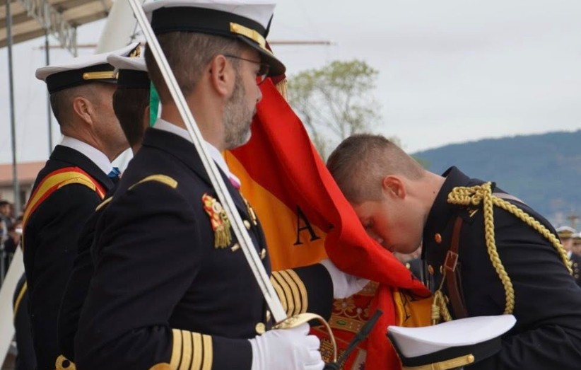 Tras esta parte de la ceremonia los nuevos marinos pasaron bajo la bandera, de tres en tres en señal de que España acepta su juramento o promesa.