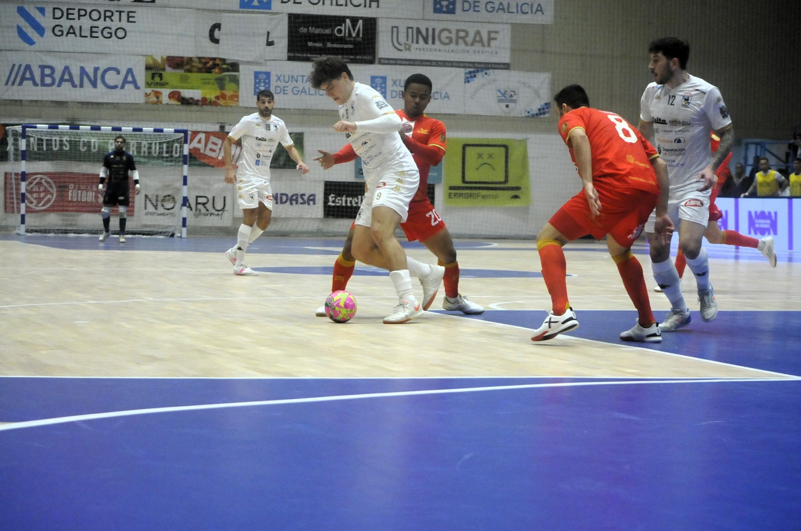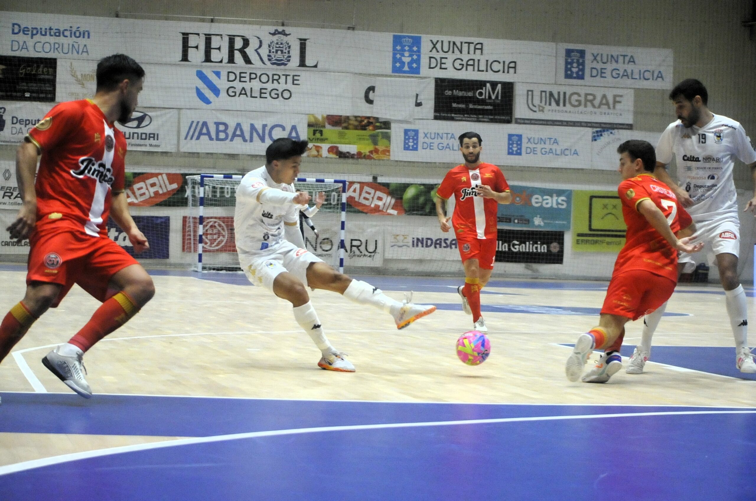 Los ferrolanos luchaban por todos los balones, cada vez llegando con más peligro a la portería defendida por Chemi, al mismo tiempo que el Jimbee Cartagena Costa Cálida se iba cargando de faltas, pero eran estos los que conseguían adelantarse con un gol de Pablo Ramírez al segundo palo tras un contragolpe
