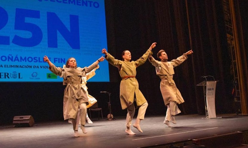 El acto también contó con la proyección de un video con una canción de la presentadora y tres piezas más audiovisuales de diferentes representantes de la ciudadanía ferrolana mostrando su repulsa a la violencia de género.