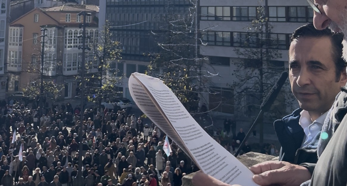 El acto central se celebró en el balcón del Ayuntamiento, donde fue leído un manifiesto por la productora y directora cinematográfica Chelo Loureiro y el excapitán del equipo de baloncesto OAR Ferrol, Miguel Loureiro, en presencia de alcaldes de todos los partidos políticos de la zona.